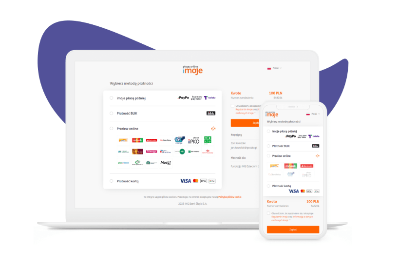 - Zapłać przez przez bramkę płatności iMoje, gdzie możesz użyć takich metod płatności jak BLIK, karta kredytowa i szybkie płatności internetowe. Możesz wybrać też płatność przez PayPal.